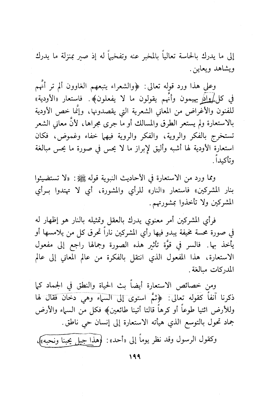 وكقول الرسول وقد نظر يوما إلى «أحد»: «هذا جبل يحبنا ونحبه»،