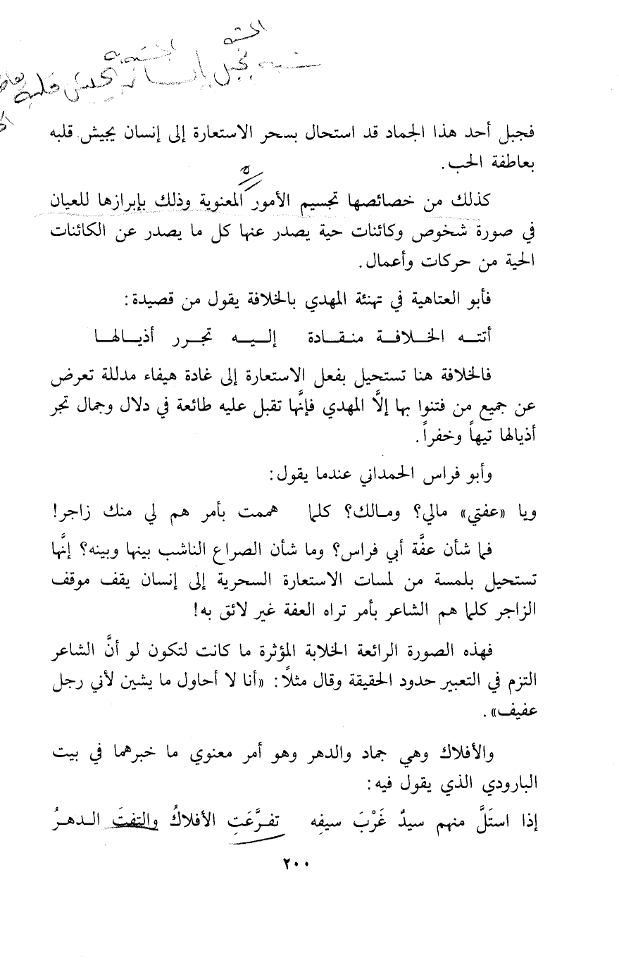 فما شأن عفّة أبي فراس؟ وما شأن الصراع الناشب بينها وبينه؟ إنّها تستحيل بلمسة من لمسات الاستعارة السحرية إلى إنسان يقف موقف الزاجر كلما هم الشاعر بأمر تراه العفة غير لائق به!