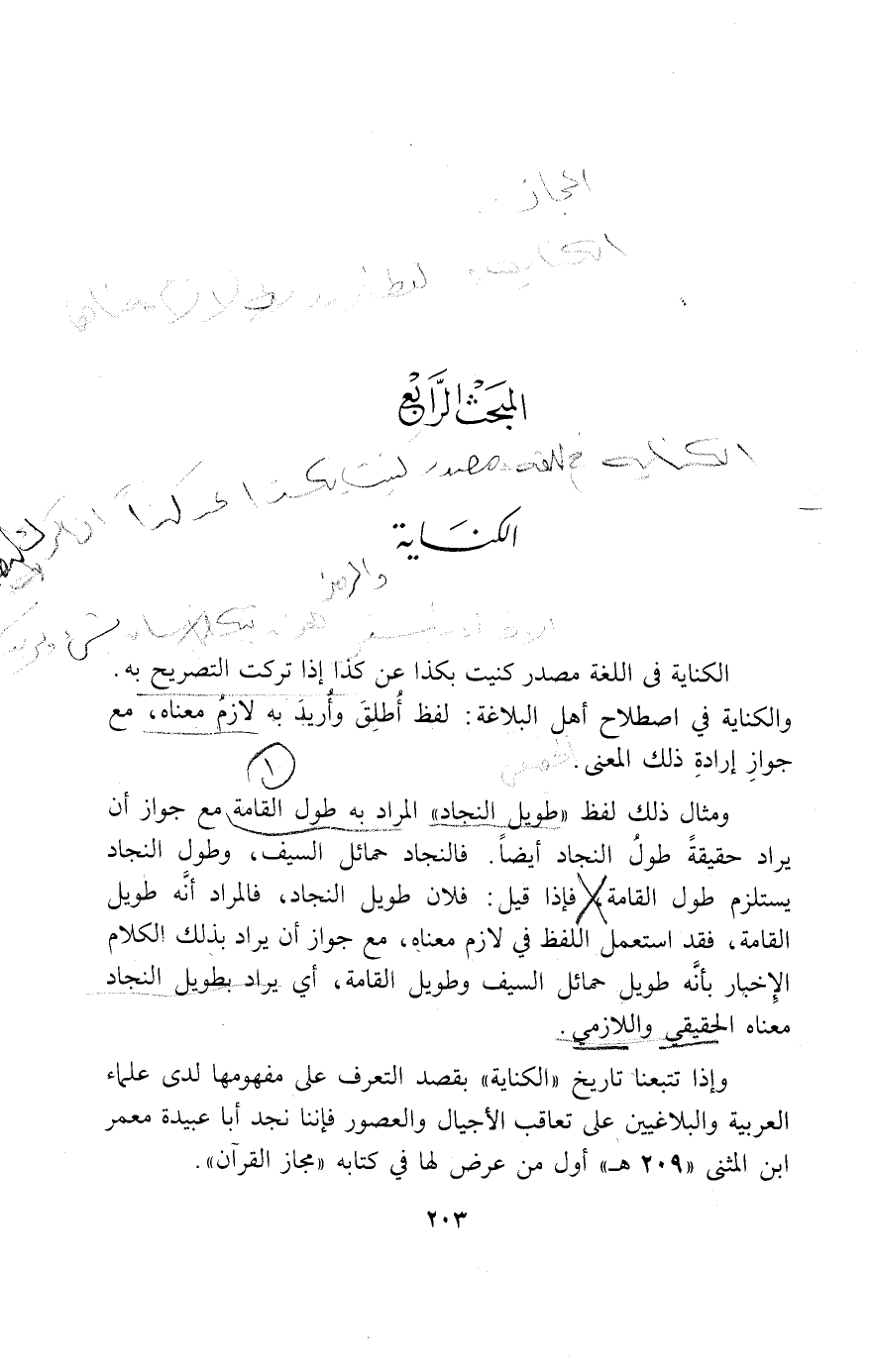 وإذا تتبعنا تاريخ «الكناية» بقصد التعرف على مفهومها لدى علماء العربية والبلاغيين على تعاقب الأجيال والعصور فإننا نجد أبا عبيدة معمر ابن المثنى «209 هـ» أول من عرض لها في كتابه «مجاز القرآن».