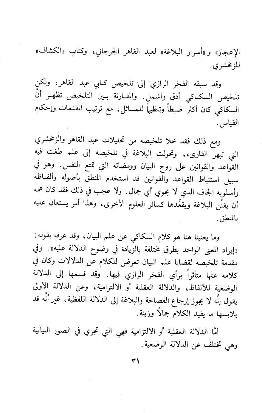 وقد سبقه الفخر الرازي إلى تلخيص كتابي عبد القاهر، ولكن تلخيص السكاكي أدق وأشمل. والمقارنة بين
