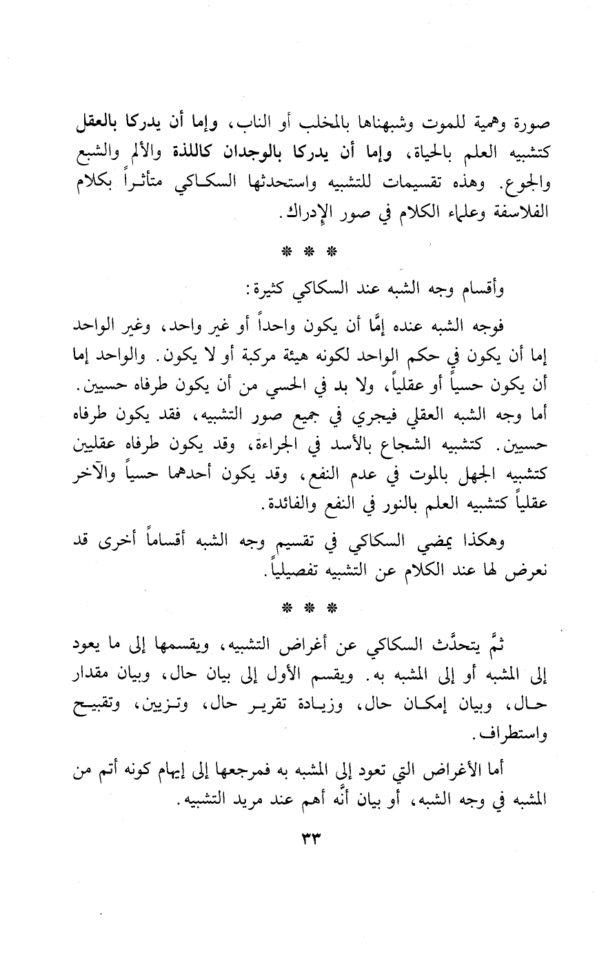 وهكذا يمضي السكاكي في تقسيم وجه الشبه أقساما أخرى قد نعرض لها عند الكلام عن التشبيه تفصيليا.