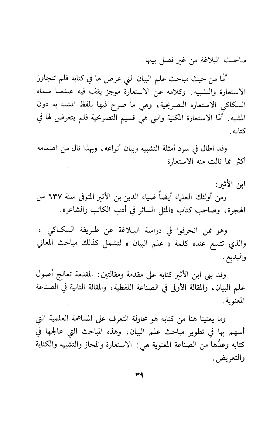 ومن أولئك العلماء أيضا ضياء الدين بن الأثير المتوفى سنة 637 من الهجرة، وصاحب كتاب «المثل السائر في أدب الكاتب والشاعر».