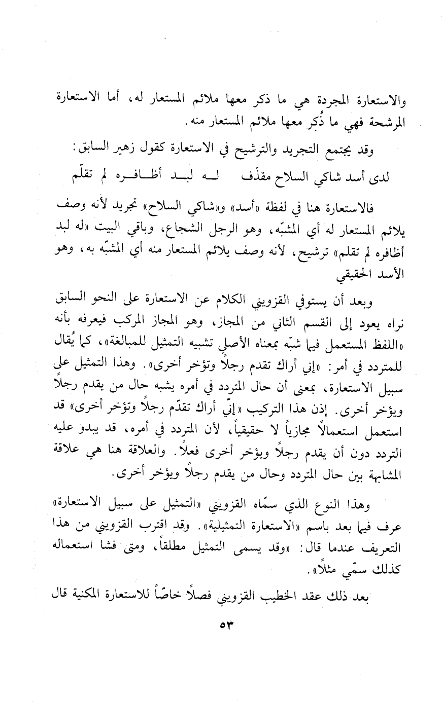 بعد ذلك عقد الخطيب القزويني فصلا خاصّا للاستعارة المكنية قال