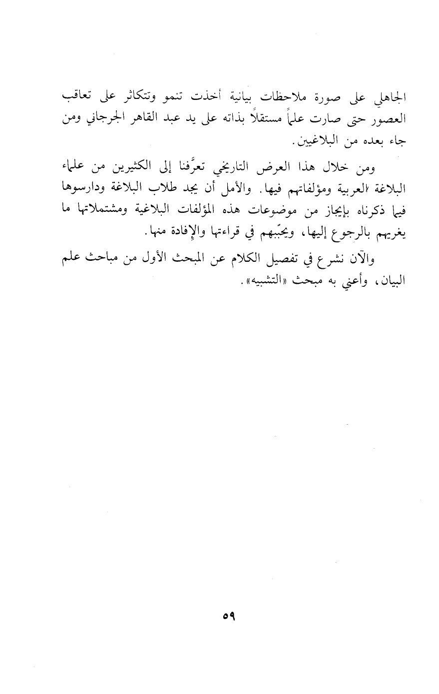 الجاهلي على صورة ملاحظات بيانية أخذت تنمو وتتكاثر على تعاقب العصور حتى صارت علما مستقلا بذاته على يد عبد القاهر الجرجاني ومن جاء بعده من البلاغيين.