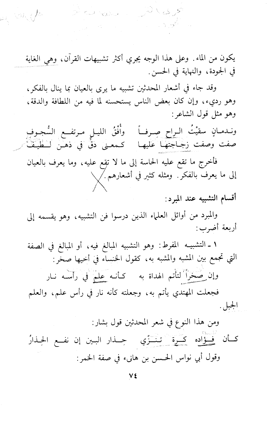 والمبرد من أوائل العلماء الذين درسوا فن التشبيه، وهو يقسمه إلى أربعة أضرب: