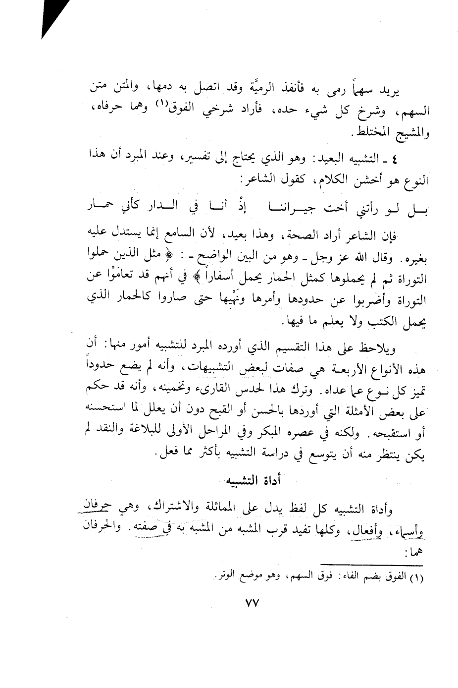 4 - التشبيه البعيد: وهو الذي يحتاج إلى تفسير، وعند المبرد أن هذا النوع هو أخشن الكلام، كقول الشاعر: