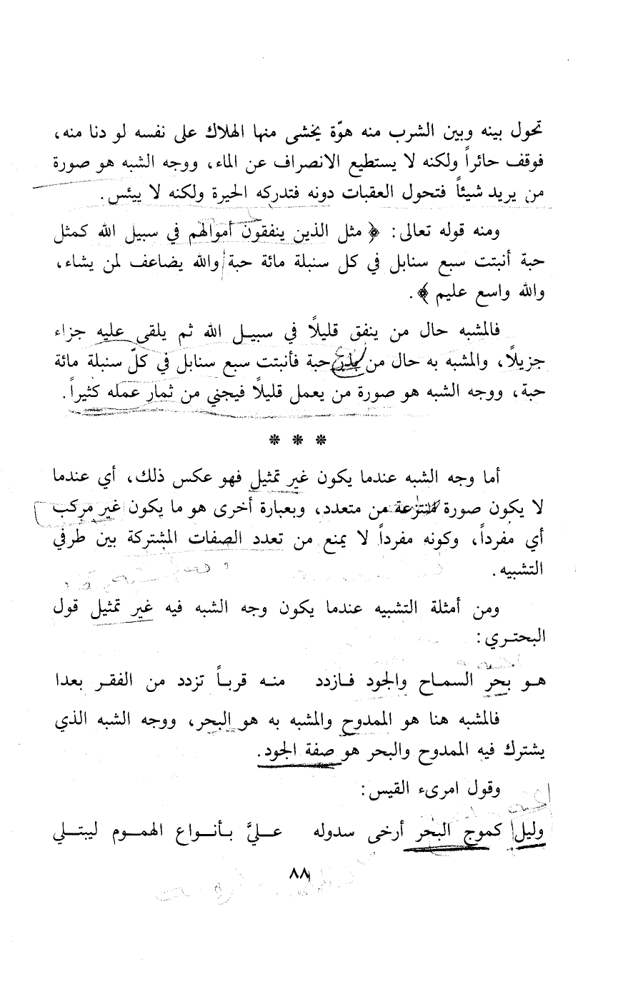 ومن أمثلة التشبيه عند ما يكون وجه الشبه فيه غير تمثيل قول البحتري: