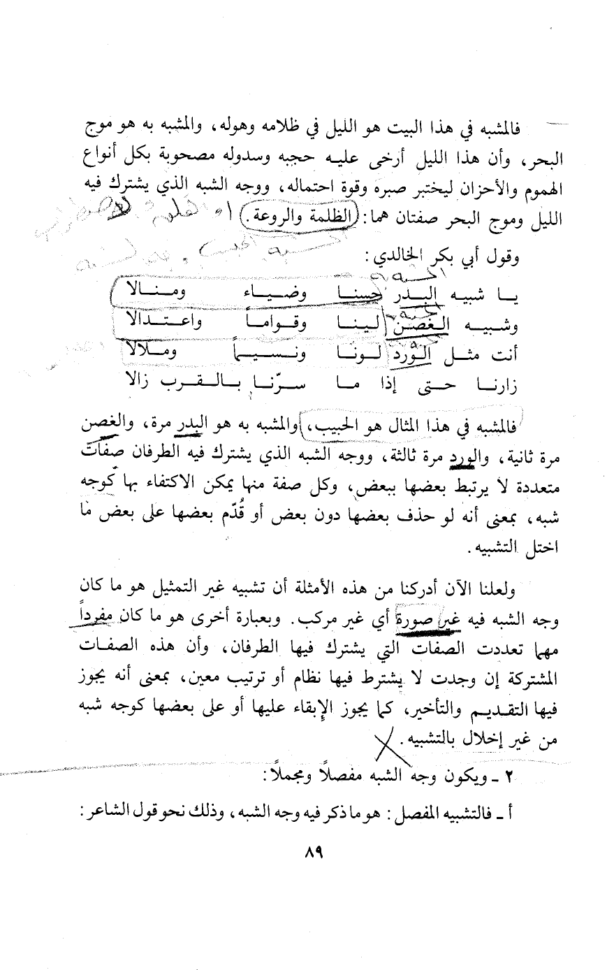 أ- فالتشبيه المفصل: هو ما ذكر فيه وجه الشبه، وذلك نحو قول الشاعر: