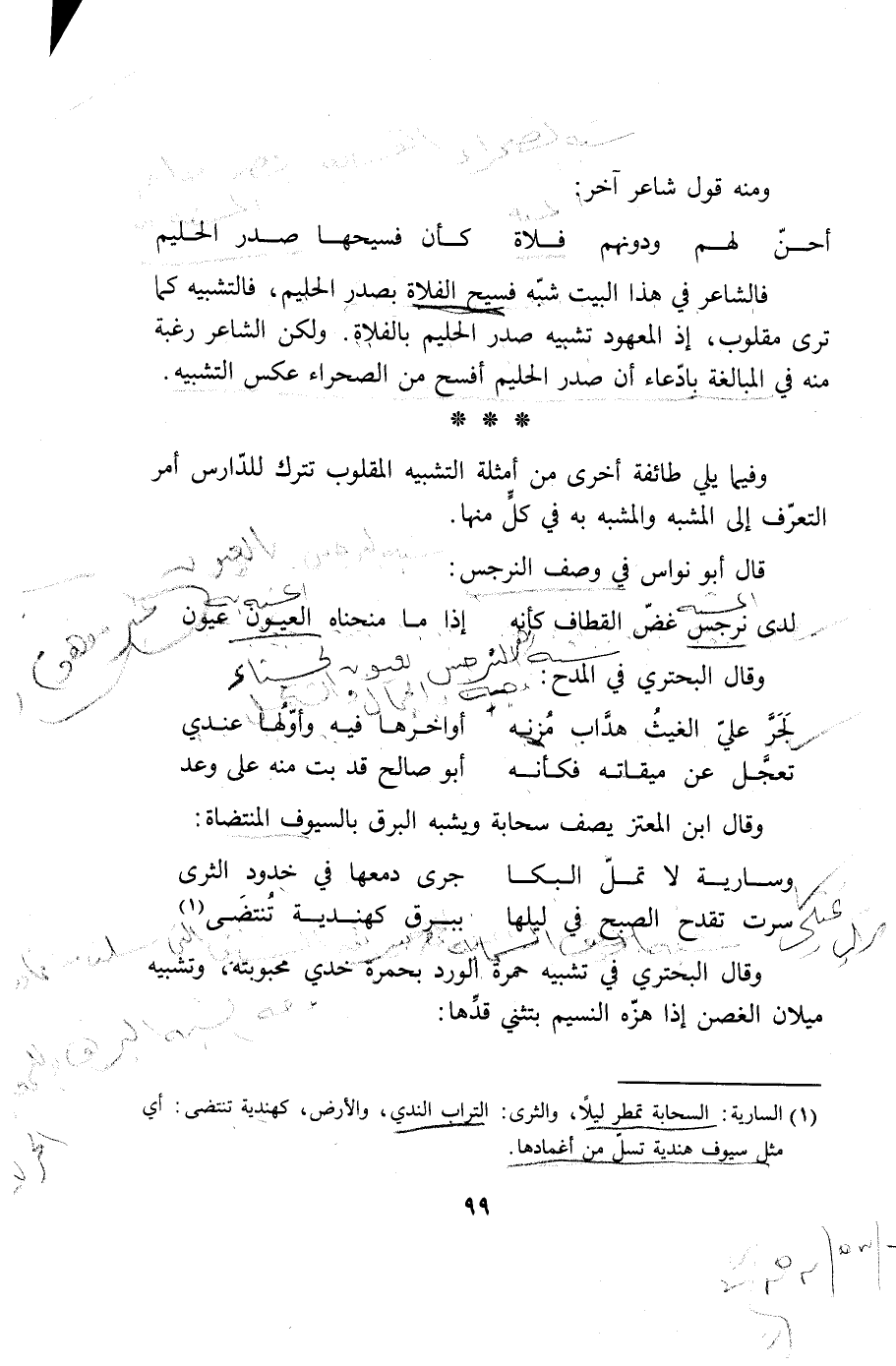 وفيما يلي طائفة أخرى من أمثلة التشبيه المقلوب تترك للدّارس أمر التعرّف إلى المشبه والمشبه به في كلّ منها.