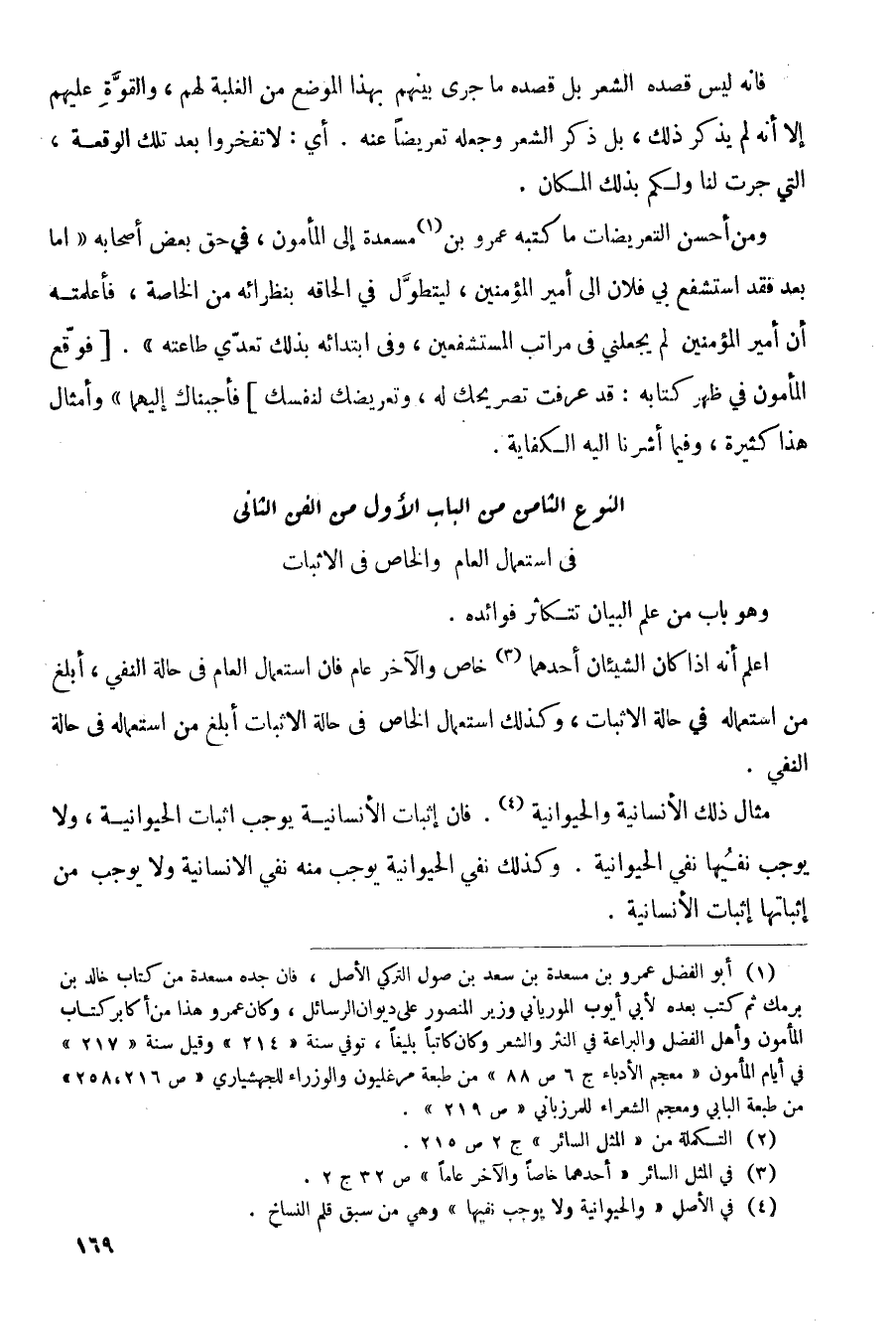 اعلم أنه إذا كان الشيئان أحدهما خاص والآخر عام فإن استعمال العام في حالة النفي، أبلغ من استعماله في حالة الإثبات، وكذلك استعمال الخاص في حالة الإثبات أبلغ من استعماله في حالة النفي.