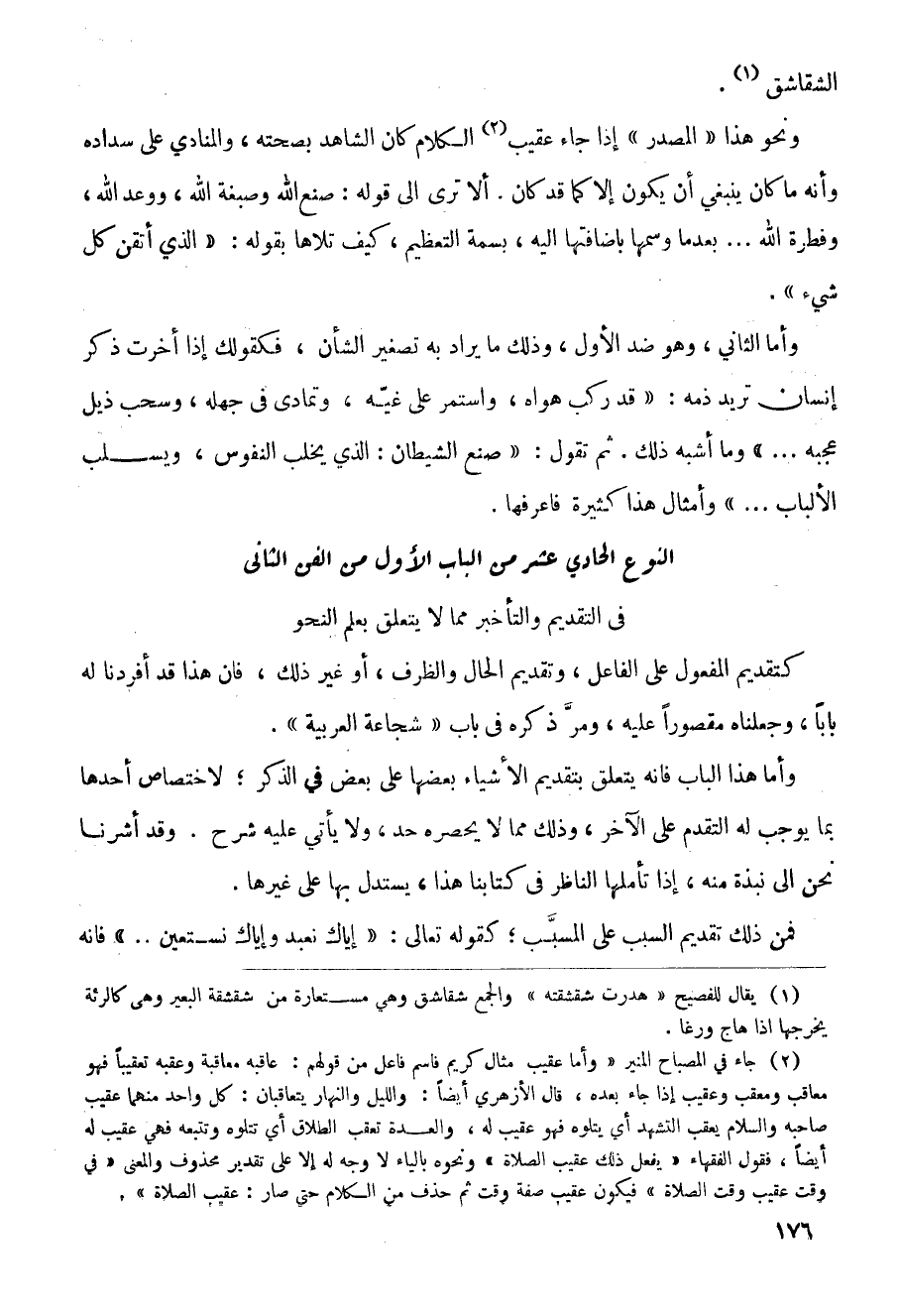 كتقديم المفعول على الفاعل، وتقديم الحال والظرف، أو غير ذلك، فإن هذا قد أفردنا له باباً، وجعلناه مقصوراً عليه، ومر ذكره في باب (شجاعة العربية).