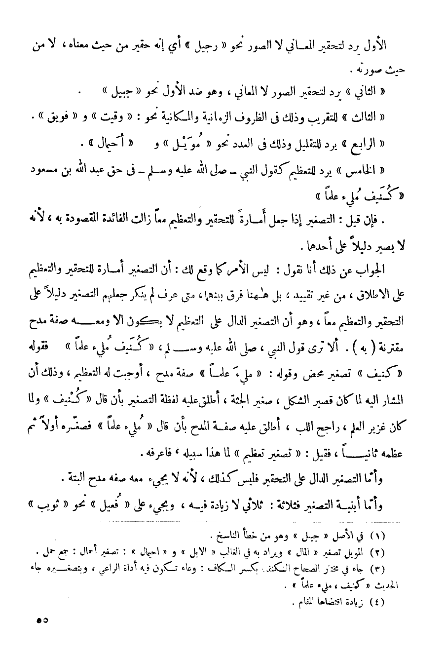 (الثاني) يرد لتحقير الصور لا المعاني، وهو ضد الأول نحو (جبيل).