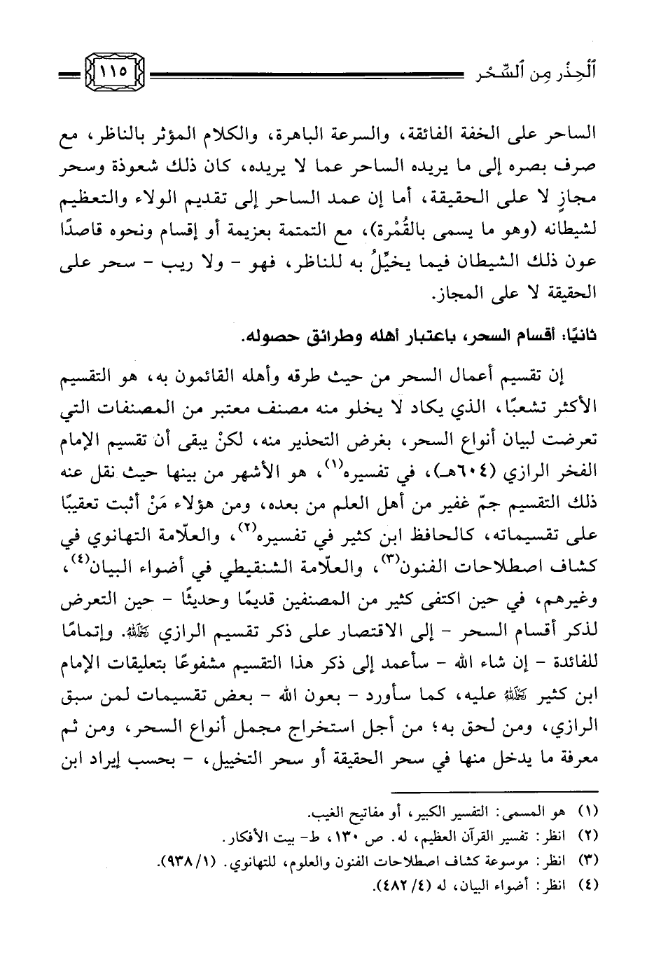 (¬1) انظر: التفسير الكبير، له (2/187) ، وقد ذكرت الأقسام الثمانية، بتصرُّف.