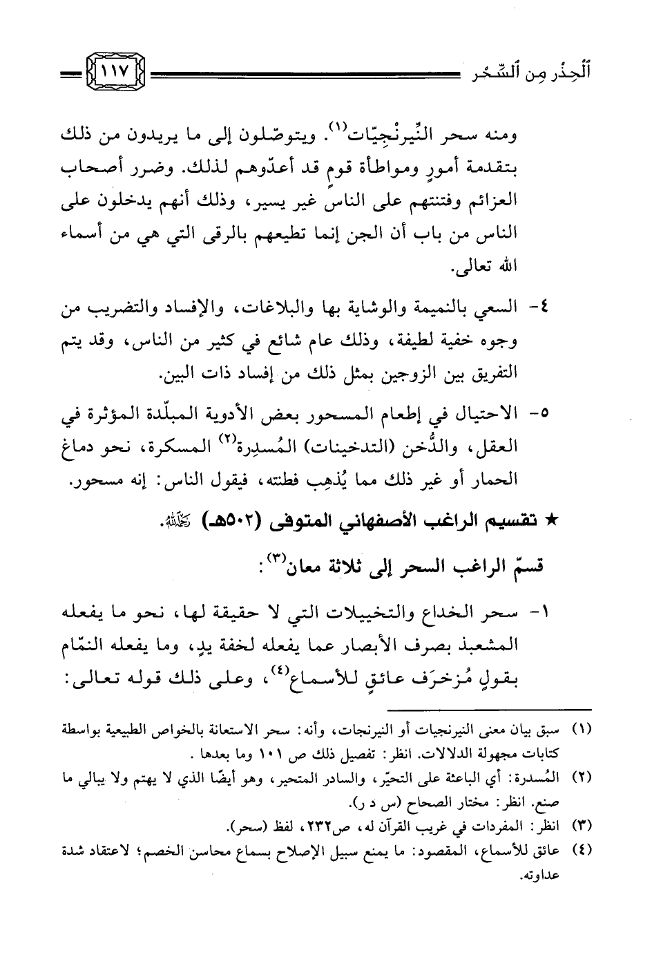 (¬2) يدخل في ذلك ما استجد في عصرنا من عجائب الصنائع وباهر المخترعات، منها أدوات الاتصال، والحواسيب الآلية، ووسائل الإعلام المسموعة والمرئية، وآلات التنقل، ورفع أثقال هائلة بمبدأ «الهيدروليك» ، وذلك باستخدام الطاقة الحركية للسوائل، وغيره كثير مما يصعب حصره، والحال أن أسبابه قد صارت معلومة عند الناس، لكنها لو عُرِضت على أسلافنا لجزموا - لخفاء سببها - بأنها من عجيب السحر، وأنه لا يقدر عليها إلا من تولى كِبْر السحر وسَبَر غَوْره!!.