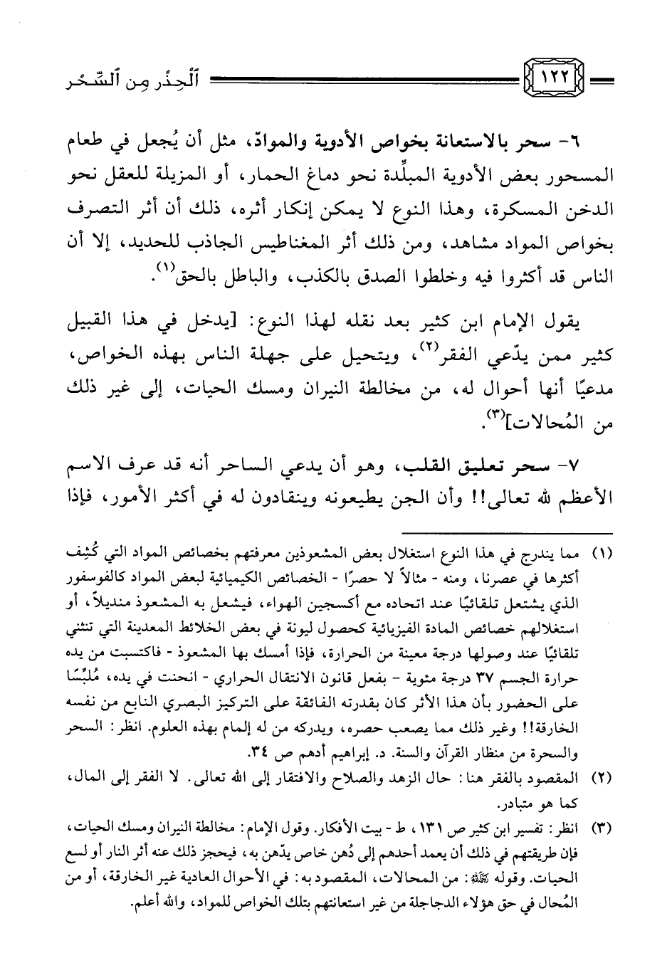 3- ... سحر بالاستعانة بخواص المواد، كالحجر الذي يجذب الحديد المسمى المغنطيس، وهو سحر لا حقيقة له كسابقه.