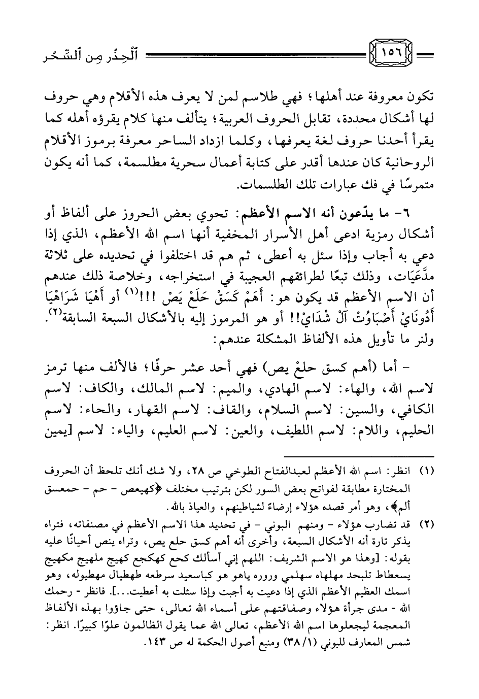 هذا، وإن خطر الكتاب لجسيم، لكونه من أكثر الكتب رواجًا في هذا الباب، ولأن كاتبه يدس في ثنايا كتابه السُّمَّ في الدَّسَم، فبينا يتقبل القارئ مبدأ فضل الأسماء الحسنى ووجوب دعاء الله بها، إذا به يجعل لها أوفاقًا حرفية وعددية، ويصاحب كتابتَها تقربٌّ إلى الكواكب السبع بكتابتها في طالعٍ سعيد، مع استدعاء خادم كل اسم من الملائكة بزعمه، فهيطال مثلاً خادم اسمه تعالى (الحي) (¬1) ، وتفصيل الأمر فيما حواه هذا المصنف لا يحسن في هذا المقام، لكنِ القصدُ التحذير منه وعدم الاغترار بثناء كثير من الناس عليه، وقد كان أول من أثنى عليه - بما هو ليس أهله - صاحبُه، حيث قال في ختام كتابه ما نصه: [واعلم أن كتابي هذا لا يأتيه الباطل من بين يديه ولا من خلفه ... فإن كنت تنكره أو تلقيه فللبيت رب يحميه، ... فيا حسرتا على من كان في نهار غفلته مفرطًا، وعن رفقته ذوي المعارف مثبَّطًا، لقد بان