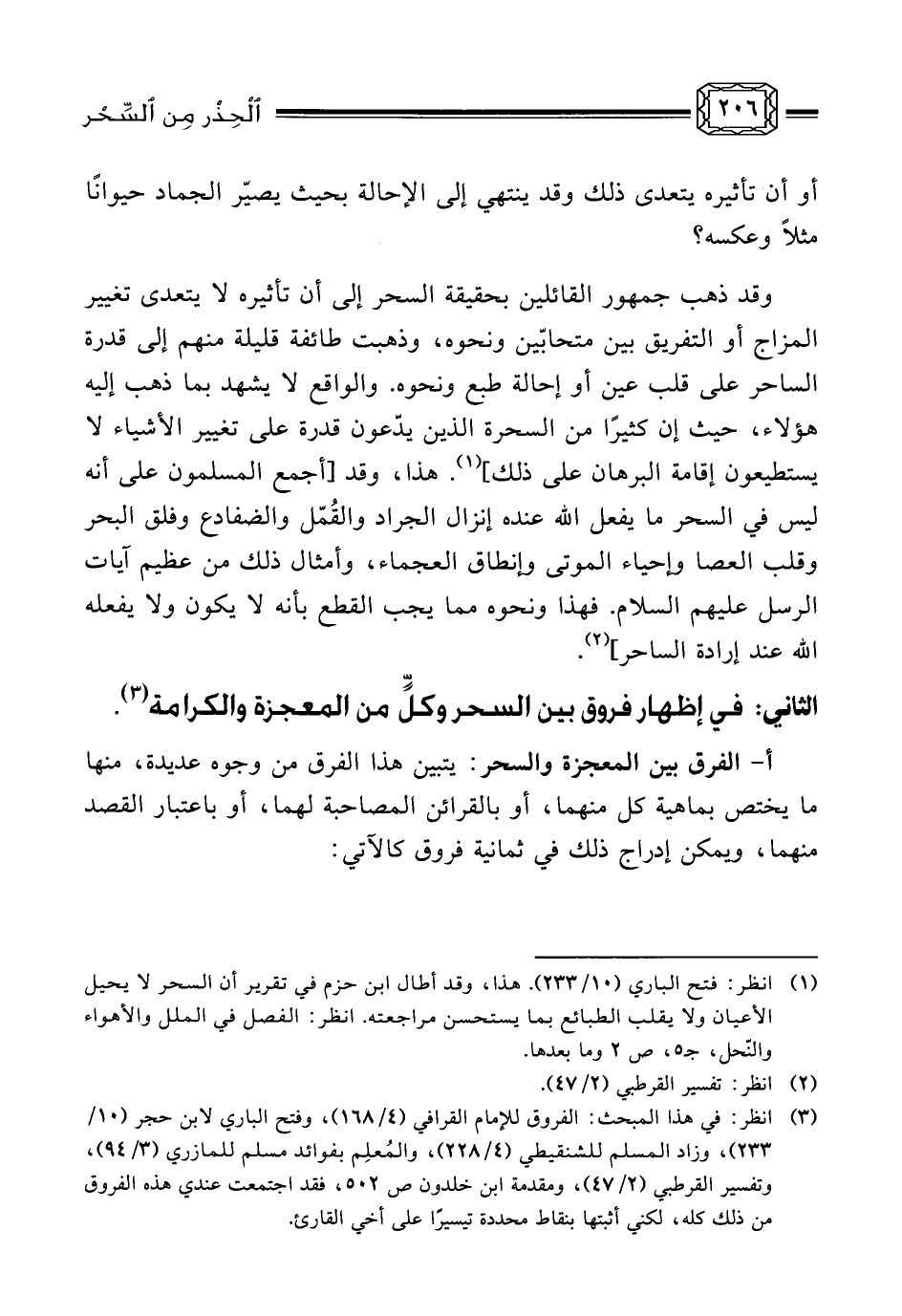 ازداد عملهم حُسنًا وتشبّع خيرًا - بزعمهم - حيث هرعوا إلى نجدة المرضى وجلب المسروق، وإخراج الجن الصارع من بدن الممسوس، فعظم تأثر الناس بهم، وافتتانهم بهم، أقول: لو علم الناس حقيقة هؤلاء الذين يفتّون في عضد الإسلام، ويحاولون دك أركانه، وأنهم من جنس عبدة الشياطين، والمشركين والمستقسمين بالأزلام، والصابئة عبدة النجوم، وأنهم سحرة مارقون من الدين، وكهنة تتنزل عليهم الشياطين، ودجالون مشعوذون يطلبون فتات الدنيا وحطامها، لانفض كثير من الناس عنهم، فلا يُظن بمسلم أن يرضى لتعاليم الإسلام السمحة، التي أفاضت على الإنسانية قرونًا خيرًا وعلمًا وحقًا، أن تغدو ألغازًا وطلسمات وحجبًا وتعويذات، وأن يتزاحم أهل الإسلام طالبين العلاج الروحاني من أسرار الحروف، وخواص الأعداد، وقدرات الأفلاك. هذا، وإن الشريعة لم تَدَع أمر هؤلاء يخبطون في مصائر الخلق خبط عشواء، بل أكدت النصوص الكريمة كونهم من حزب الشيطان، وأنهم صائرون إلى ما يصير إليه من الخسران، فلم تفسح لهم ولو كمَفْحَص قَطاةٍ (¬1) في حظيرة الإيمان، أو تؤمّلهم ولو بموضع سوط في جنان الرحمن.