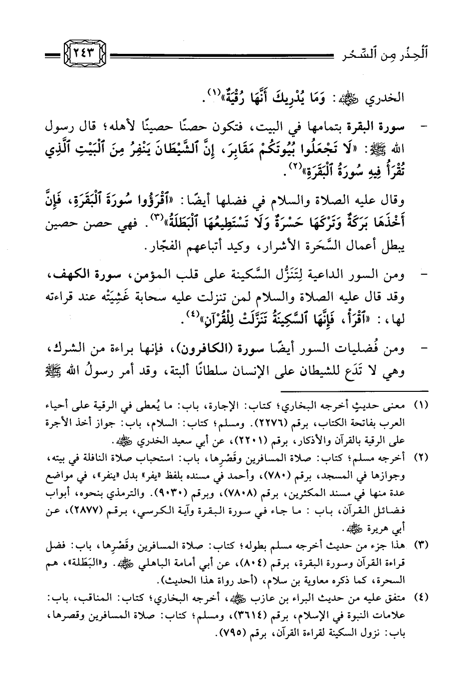 لقد تفضّل الله تعالى على المؤمن بهدايته للإيمان، وإن تلاوة ما سبق ذكره من السور والآيات لم يكن لينفع قارئه، النفع التام، إلا إذا صدر عن قلبٍ مخلَّصٍ من شوائب الشرك، ولوثات الرياء، فاحرص على حفظ النعمة العظمى، والمنة الكبرى: نعمة الإيمان، فهي الحصن الحصين، وهي التي تُحِيل النطق بالأذكار - ومن أعظمها تلاوة آيات الله تعالى - من مجرد قولٍ لكلمات يلهج بها اللسان، إلى أنوار من الهدى تحمي القلب فيطمئن بها، وتُبصِّره بالحق فيعقله فيتدبّر عندها هوان الدنيا، وحسن ثواب الآخرة، وتزكو نفسه، فتتلبسها السكينة، ويجلّلها الفلاح، وإن نعمة الإيمان هي التي تكشف للروح معنى النفخة العلوية والخِلْقة السويّة التي أسجد اللهُ تعالى ملائكتَه الكرام بسببها لآدم عليه السلام، كما تكشف للروح شدة عداوة إبليس لبني آدم عليه السلام، وتكبُّرَه الذي حجب عنه كل خير، وأحاله رجيمًا مذؤومًا مدحورًا، ملعونًا، مُتوعَّدًا بأشد العذاب، إذا عقل القلب ذلك اتخذت الروحُ عندها الشيطانَ عدوًا، وحذِرَتْ مكايده، وحصَّنَتِ النفس من مداخله، ولا يقتصر أمرها على ذلك، بل إن هذه النعمة العظمى تلقي السرور والحبور في مناحي القلب، فيأمر القلبُ الجسدَ بحسن الامتثال للوهّاب، وبشدة الكراهية لمخالفة أمره، فتمتثل الجوارح عندها بالعبادة فيحقق العبد غاية وجوده، والحكمة من خلقه، فيعبد ربّه حق العبادة، ويتوكل عليه حق التوكل.