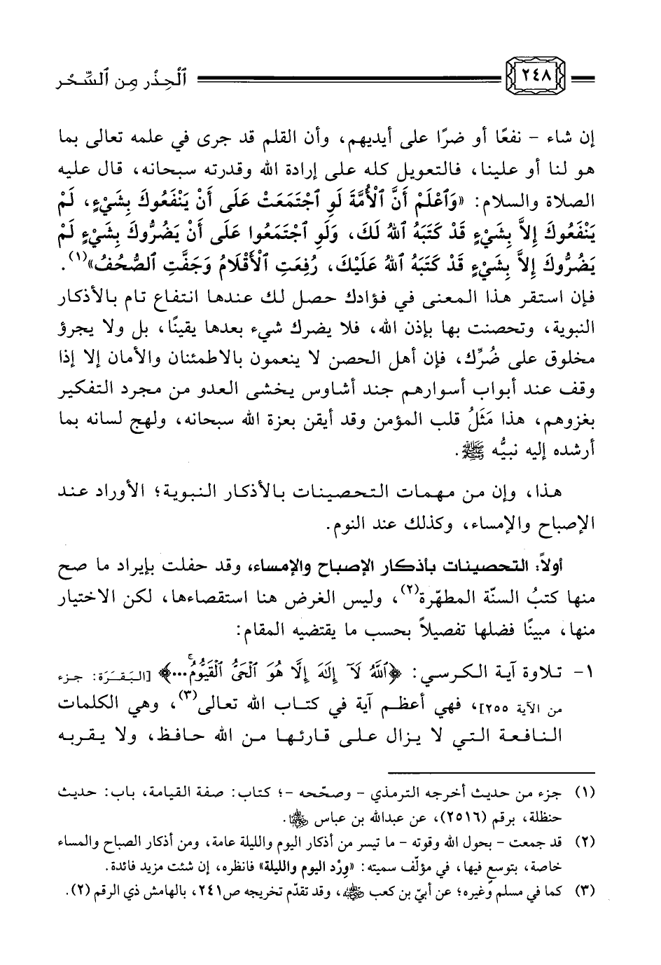 4- ... قول: «سُبْحَانَ اللهِ وَبِحَمْدِهِ، عَدَدَ خَلْقِهِ، وَرِضَا نَفْسِهِ، وَزِنَةَ عَرْشِهِ، وَمِدَادَ كَلِمَاتِهِ» (ثلاث مرات) ، وهذه لو وزنت بما يقوله المؤمن من أذكار منذ انقضاء صلاة الفجر إلى وقت الضحى، لوزنتهن (¬2) .