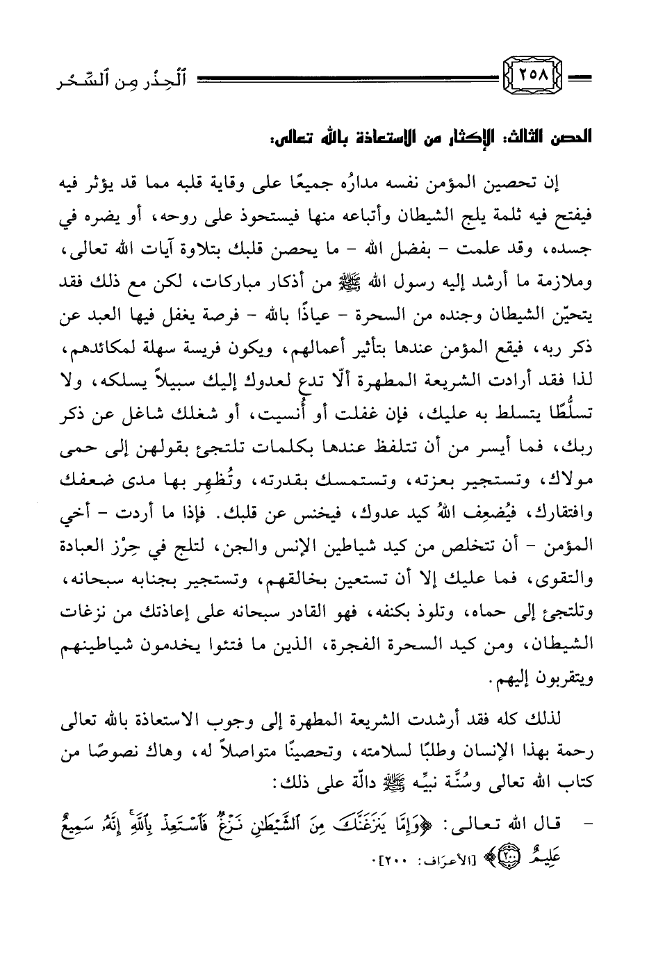 قال رحمه الله: [فهذه ثلاث آيات (¬1) ليس لهن رابعة في معناها، وهو أن الله يأمر بمصانعة العدوّ الإنسيِّ والإحسان إليه ليردَّه عنه طبعُه الطيبُ الأصلِ، بالموادّة والمُصافاة، ويأمر سبحانه بالاستعاذة به من العدو الشيطاني لا محالةَ، إذ لا يقبل مصانعة ولا إحسانًا، ولا يبتغي غير هلاك ابن آدم، لشدة العداوة بينه وبين أبيه آدم من قبلُ] اهـ. من كلام الإمام رحمه الله (¬2) .