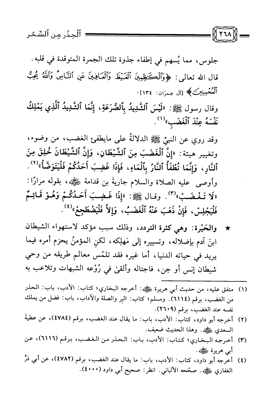 - ... وقال تقدست أسماؤه: [الأنعَام: 112] {وَكَذَلِكَ جَعَلْنَا لِكُلِّ نَبِيٍّ عَدُوًّا شَيَاطِينَ الإِنْسِ وَالْجِنِّ يُوحِي بَعْضُهُمْ إِلَى بَعْضٍ زُخْرُفَ الْقَوْلِ غُرُورًا وَلَوْ شَاءَ رَبُّكَ مَا فَعَلُوهُ فَذَرْهُمْ وَمَا يَفْتَرُونَ *} .