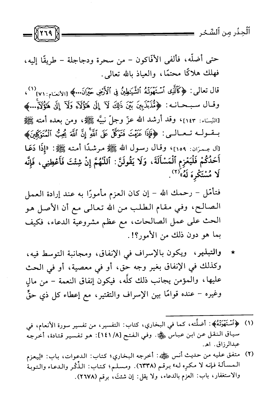 * ... والعمد إلى تغيير خلق الله تعالى، وهو من أعظم ما يستهوي الشياطين، والعياذ بالله عزّ وجلّ، فتعمد إلى تزيين ذلك للناس، فيقع كثير منهم في هذا الشَّرْك، متوهّمين بأن هذا التغيير يحسّن مظهرهم ويرفع منزلتهم، وقد لا يقتصر هذا التغيير على صاحبه، بل قد يسوِّل له الشيطان أن يتعدى ذلك إلى محاولة تغيير وتشويه خلقٍ آخر، وهذا عين ما فعله بعض مشركي العرب، حين عمدوا إلى تشقيق آذان الأنعام وجعلوا ذلك سمة وعلامة على تحكّمهم بجواز الانتفاع بها، أو على حرمة ذلك، أو على اختصاص هذا النفع بأناس دون آخرين، ومن ذلك ما ادَّعَوْه افتراءً من [بَحِيرة، أو سائبة، أو وصيلة، أو حامٍ] (¬2) ، فوقعوا في تغيير دين الله، ومحادّة
