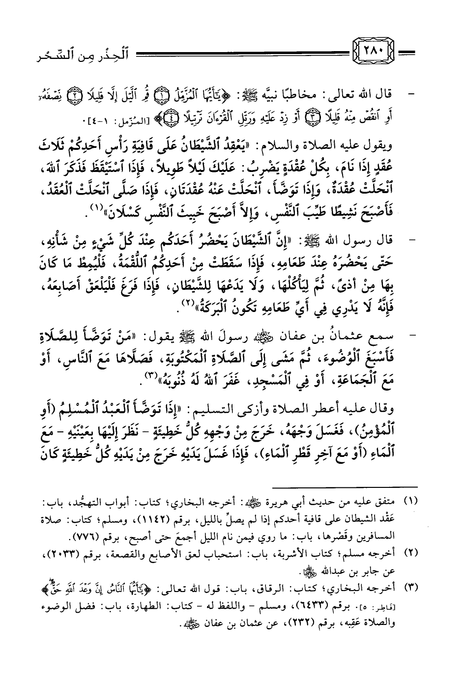(¬1) الحِجامة: هي المداواة بالمِحْجَم، وهي: آلة الحَجْم، وهي تشبه كأسًا يُفرغ منه الهواء، ويوضع على الجلد فيُحدِث فيها تهيّجًا وينجذب إليه الدم أو المادة بقوة، فيقوم الحجّام عندها بإخراج ذلك الدم المنجذب بمِشْرط. ومنافع الحجامة - سوى إبطال أثر السحر - جمّة، منها: أنها تُنْقِي سطح البدن باستفراغ العروق من أخلاط الدم الزائد الفاسد هذا. انظر: الطب النبوي لابن القيم ص 43. ... هذا، وإن الحجامة تساعد بشكل ملحوظ - كما قرره أطباء الطب البديل اليوم - في التداوي من أمراض عديدة: كداء الشقيقة، والتجلط الدموي، وداء آلام المفاصل، وغيرها.