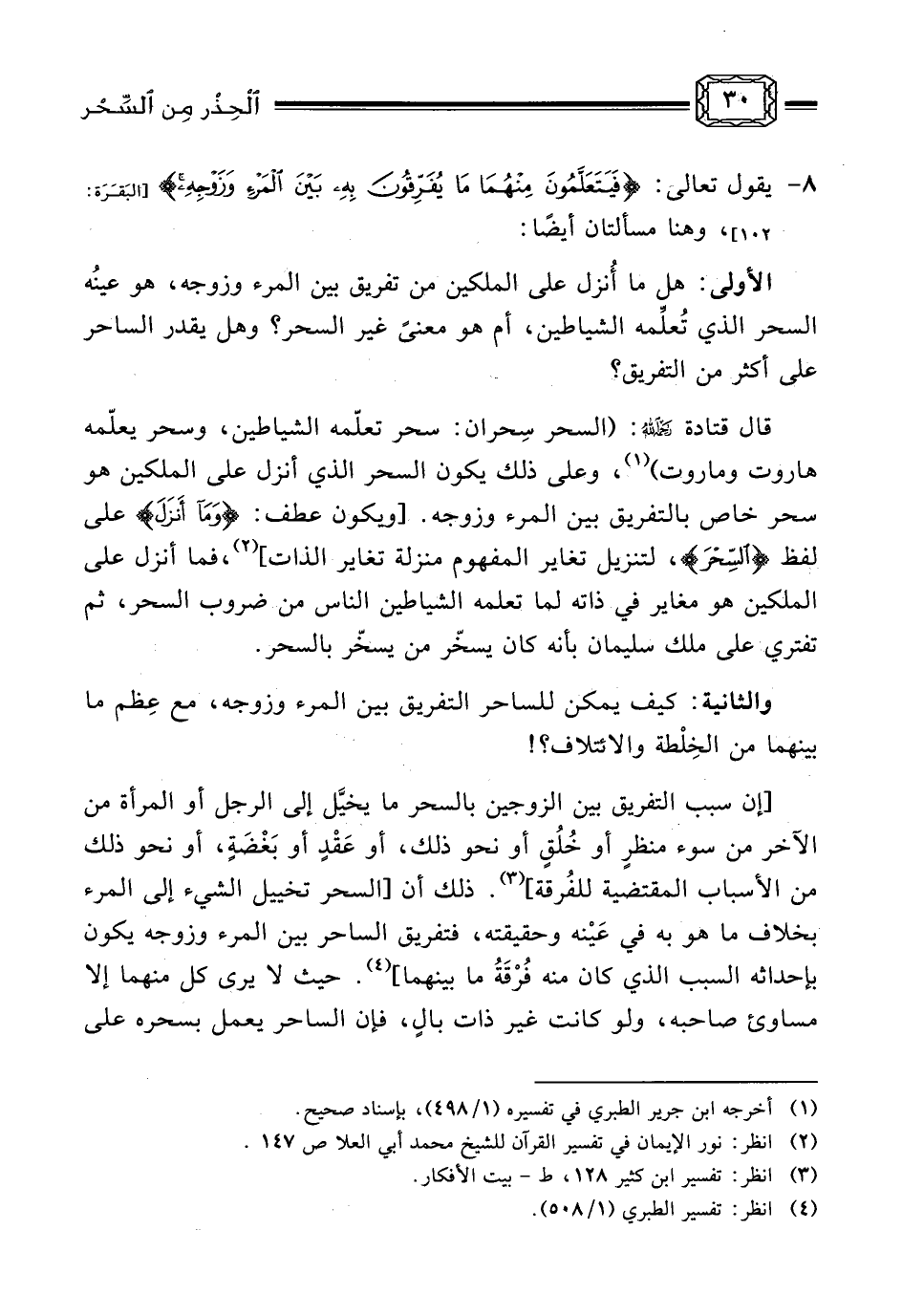 8- ... يقول تعالى: [البَقَرَة: 102] {فَيَتَعَلَّمُونَ مِنْهُمَا مَا يُفَرِّقُونَ بِهِ بَيْنَ الْمَرْءِ وَزَوْجِهِ} ، وهنا مسألتان أيضًا: