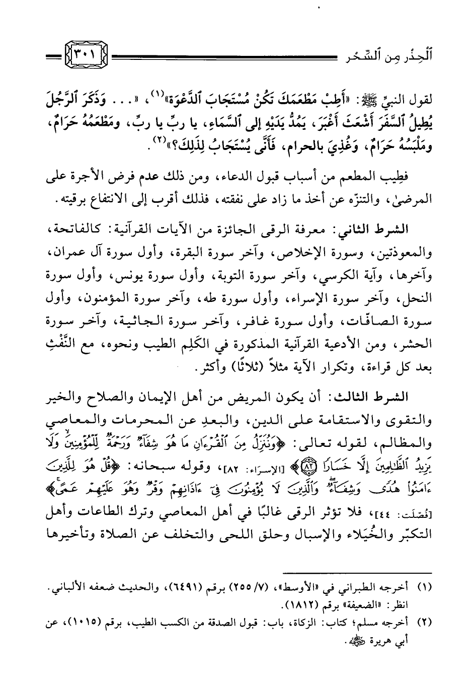 (¬2) أخرجه ابن ماجَهْ، في كتاب: الطب، باب: الاستشفاء بالقرآن، برقم (3501) ، عن علي رضي الله عنه بإسنادٍ ضعيفٍ فيه الحارث الأعور. انظر: «الضعيفة» للألباني، برقم (3093) .