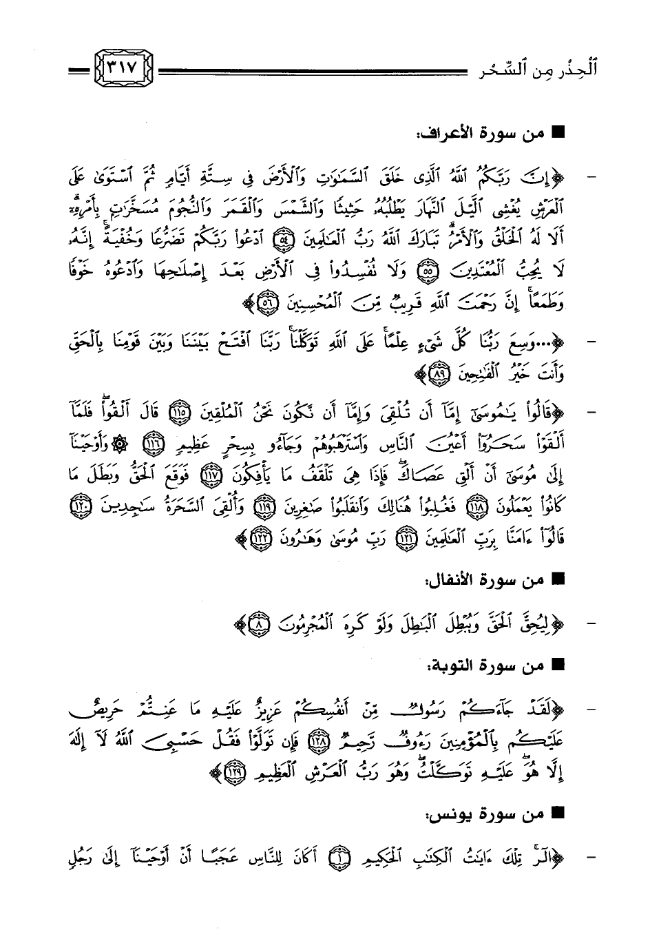 - ... {وَالصَّآفَّاتِ صَفًّا *فَالزَّاجِرَاتِ زَجْرًا *فَالتَّالِيَاتِ ذِكْرًا *إِنَّ إِلَهَكُمْ لَوَاحِدٌ *رَبُّ السَّمَاوَاتِ وَالأَرْضِ وَمَا بَيْنَهُمَا وَرَبُّ الْمَشَارِقِ *إِنَّا زَيَّنَّا السَّمَاءَ الدُّنْيَا بِزِينَةٍ الْكَوَاكِبِ *وَحِفْظًا مِنْ كُلِّ شَيْطَانٍ مَارِدٍ *لاَ يَسَّمَّعُونَ إِلَى الْمَلإَِ الأَعْلَى وَيُقْذَفُونَ مِنْ كُلِّ جَانِبٍ *دُحُورًا وَلَهُمْ عَذَابٌ وَاصِبٌ *إِلاَّ مَنْ خَطِفَ الْخَطْفَةَ فَأَتْبَعَهُ شِهَابٌ ثَاقِبٌ *}