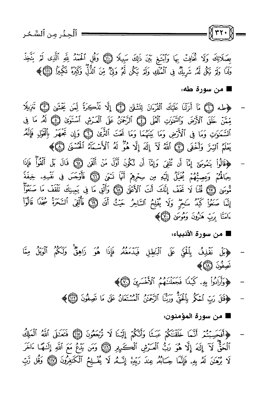 - ... {قُلْ أَعُوذُ بِرَبِّ الْفَلَقِ *مِنْ شَرِّ مَا خَلَقَ *وَمِنْ شَرِّ غَاسِقٍ إِذَا وَقَبَ *وَمِنْ شَرِّ النَفَّاثَاتِ فِي الْعُقَدِ *وَمِنْ شَرِّ حَاسِدٍ إِذَا حَسَدَ *}
