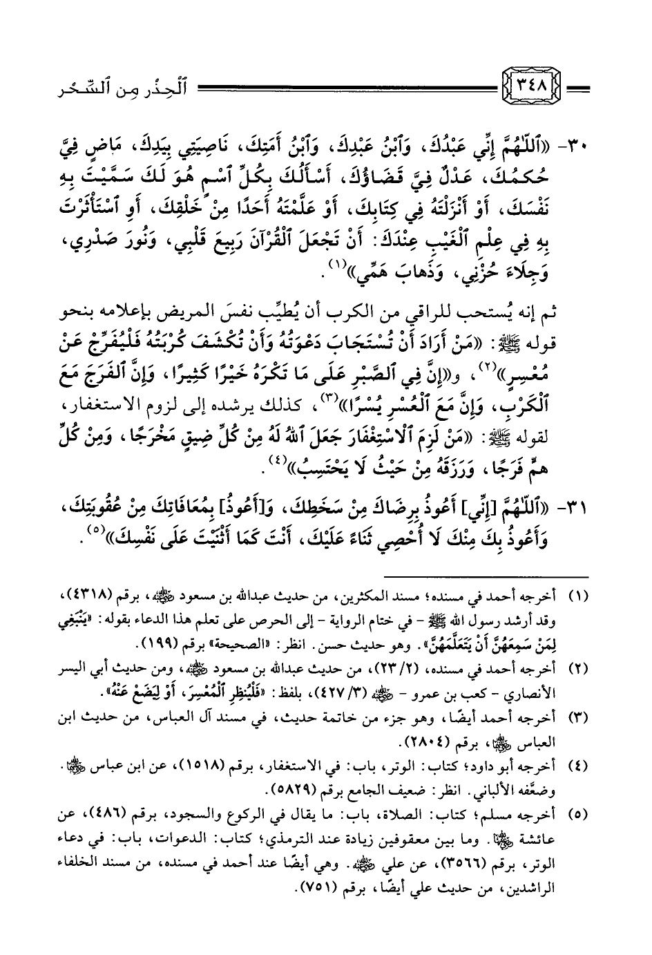 8- ... أن السحر يؤثر بعلة عادية وليس إتيانه سببًا مولِّدًا مُوجِبًا لحدوث أثره، فقد يحدث أثره وقد لا يحدث، وقد يمكن إبطاله ابتداءً بوجود مانع محصِّنٍ من أذكار ورقى مشروعة، وانتهاءً بما شرع من طرق إبطاله.