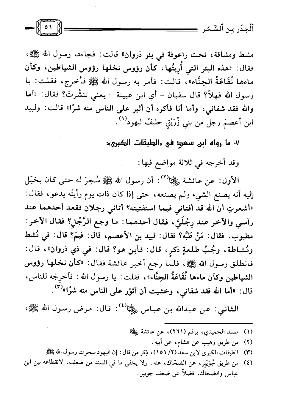 (¬3) الطبقات الكبرى لابن سعد (2/151) ، ذِكر من قال: إن اليهود سحرت رسول الله صلى الله عليه وسلم.