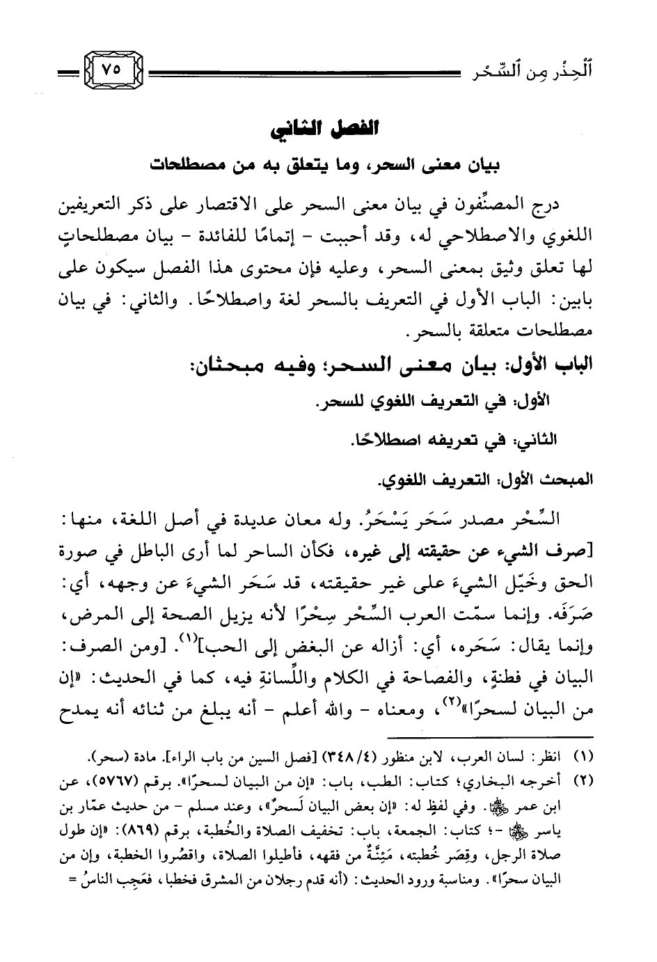 الباب الأول: بيان معنى السحر؛ وفيه مبحثان:
