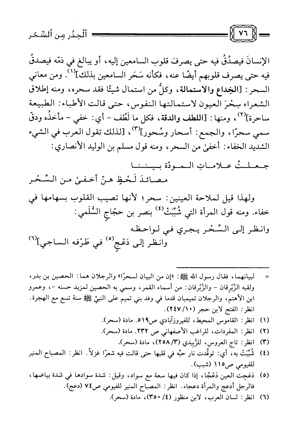 (¬3) انظر: تاج العروس، للزَّبِيدي (3/258) ، مادة (سحر) .