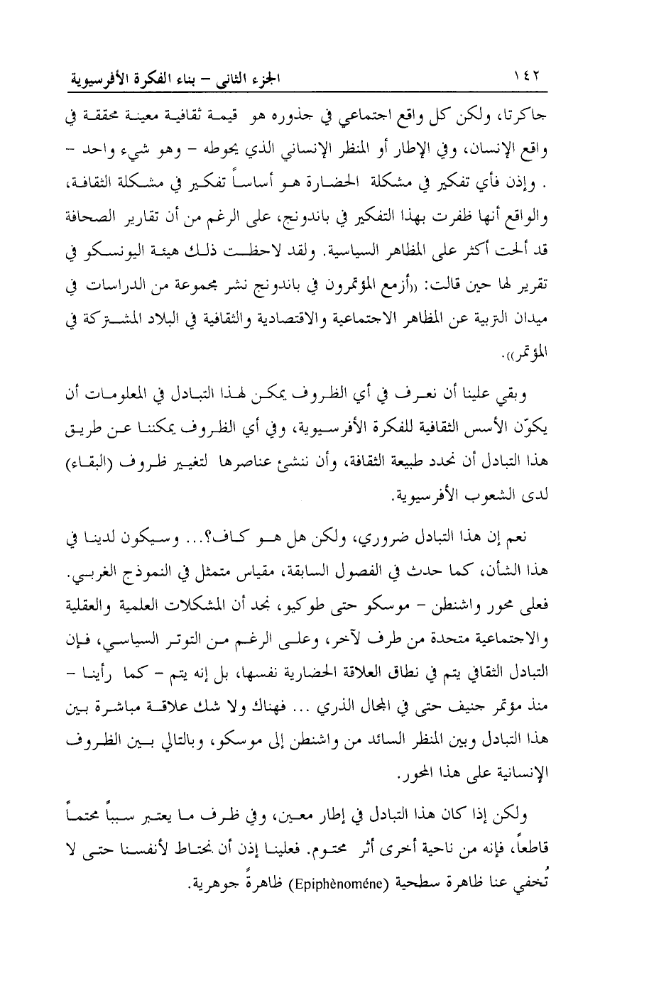 وبقي علينا أن نعرف في أي الظروف يمكن لهذا التبادل في المعلومات أن يكوّن الأسس الثقافية للفكرة الأفرسيوية، وفي أي الظروف يمكننا عن طريق هذا التبادل أن نحدد طبيعة الثقافة، وأن ننشئ عناصرها لتغيير ظروف (البقاء) لدى الشعوب الأفرسيوية.
