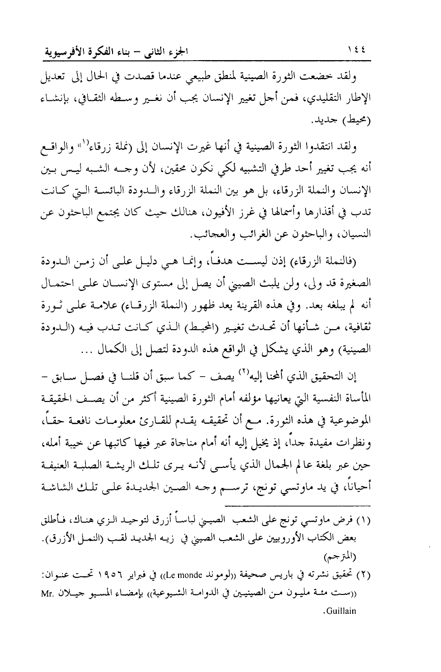 (¬2) تحقيق نشرته في باريس صحيفة ((لوموند Le monde)) في فبراير 6 1956 تحت عنوان: ((ست مئة مليون من الصينيين في الدوامة الشيوعية)) بإمضاء المسيو جيلان Mr.Guillain.
