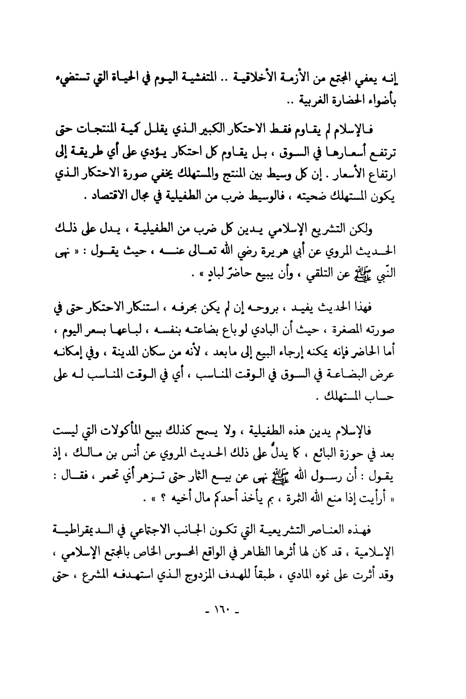 إنه يعفي المجتمع من الأزمة الأخلاقية .. المتفشية اليوم في الحياة التي تستضيء بأضواء الحضارة الغربية ..