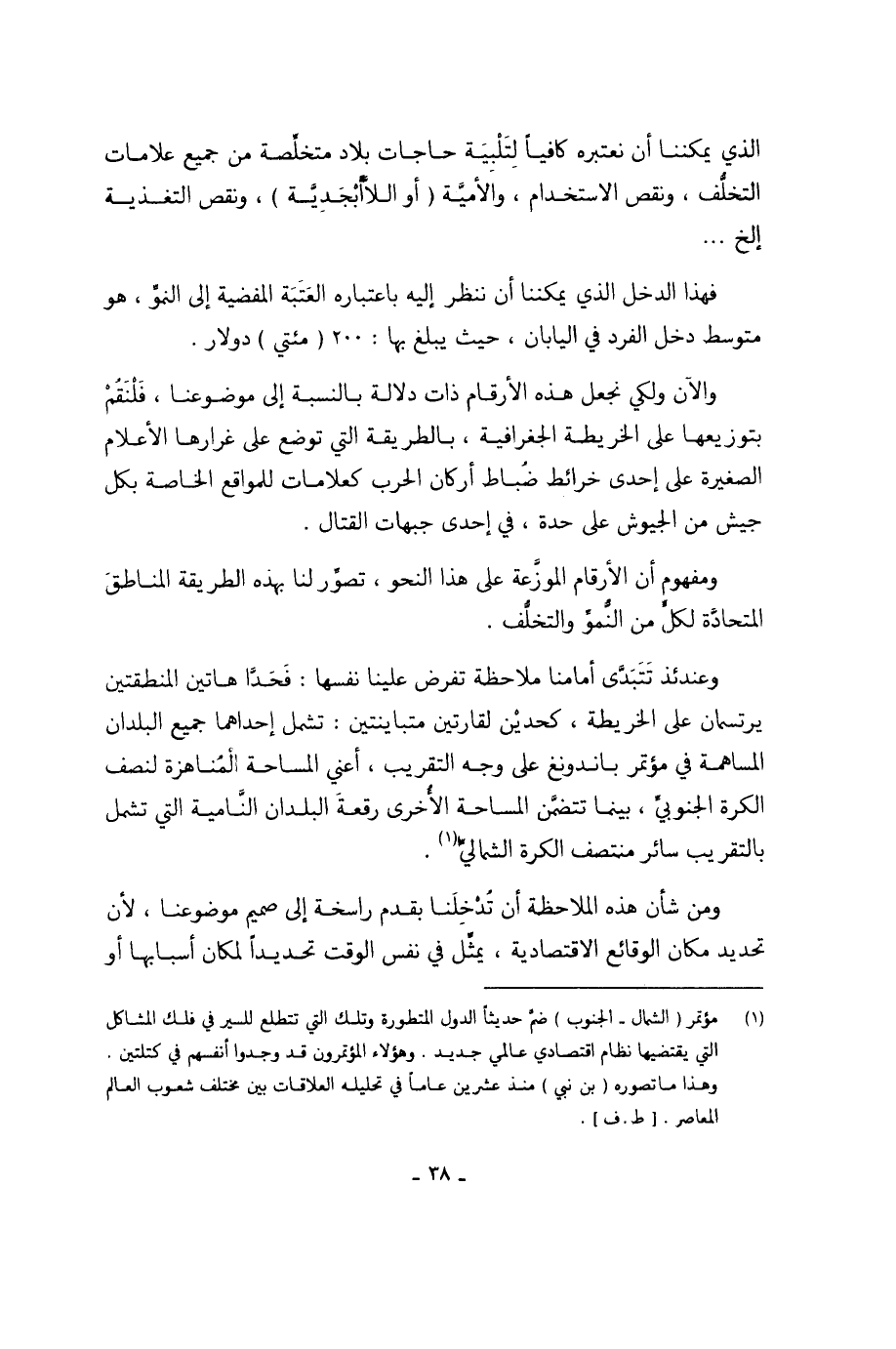 ومفهوم أن الأرقام الموزَّعة على هذا النحو، تصوِّر لنا بهده الطريقة المناطقَ المتحادَّة لكلٍّ من النُّموِّ والتخلُّف.