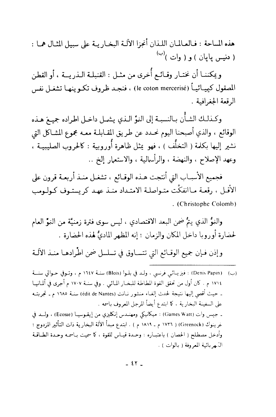والنموُّ الذي يتمُّ ضمن البعد الاقتصادي، ليس سوى فترة زمنيَّة من النموِّ العام لحضارة أوروبا داخل المكان والزمان؛ إنه المظهر الماديُّ لهذه الحضارة.