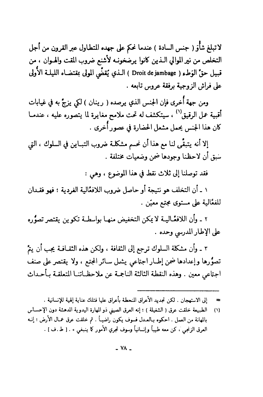 لا تبلغ شأْوَ (جنس السادة) عندما نحكم على جهده المتطاول عبر القرون من أجل التخلص من نير الموالي الذين كانوا يرضخونه لأشنع ضروب المقت والهوان، من قبيل حقّ الوَطء ( Droit de jambage) الذي يُقضِّي المولى بمقتضاه الليلة الأُولى على فرايق الزوجية برفقة عروس تابعه.