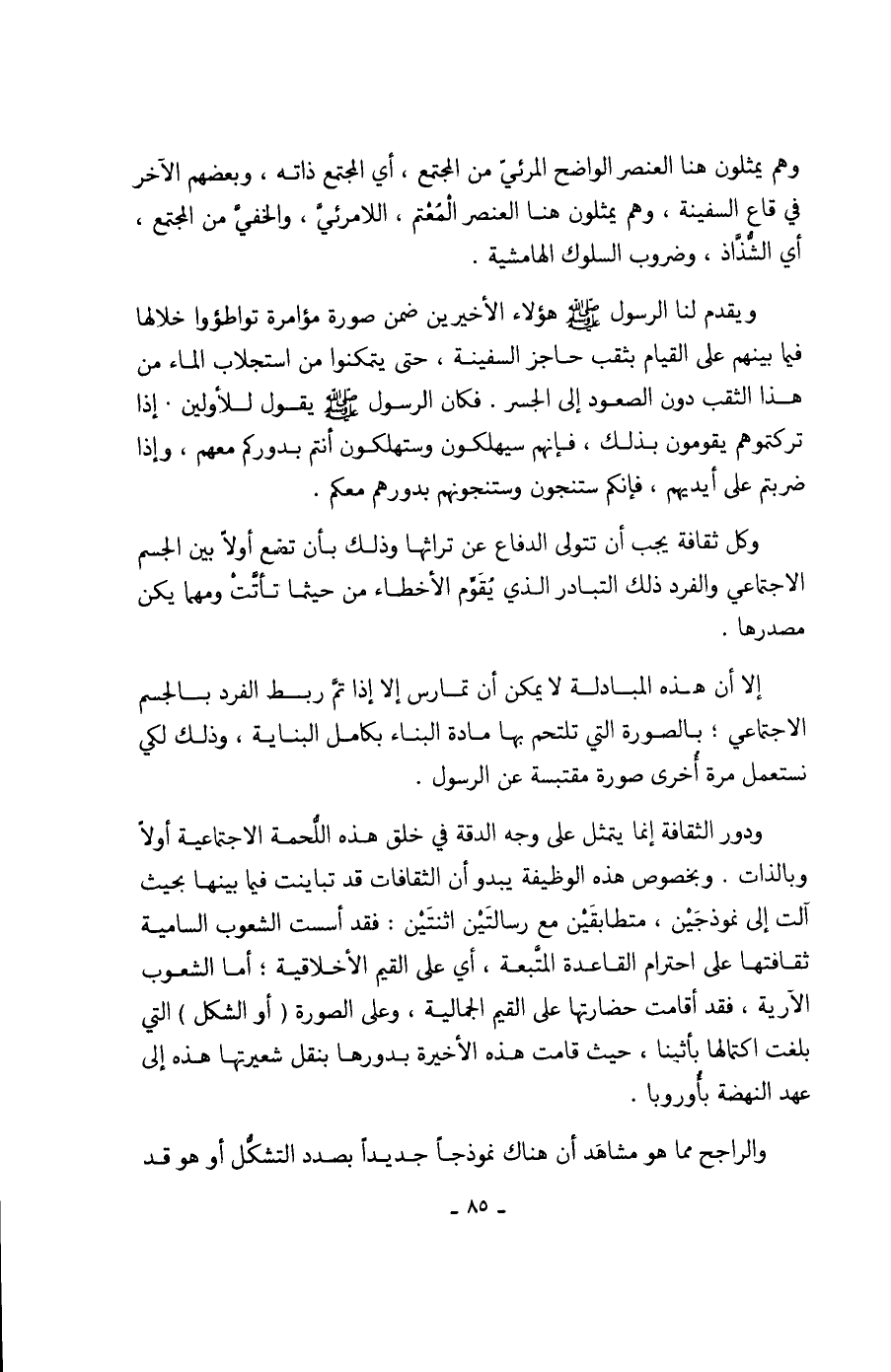 إلا أن هذه المبادلة لا يمكن أن تمارس إلا إذا تمَّ ربط الفرد بالجسم الاجتماعي؛ بالصورة التي تلتحم بها مادة البناء بكامل البناية، وذلك لكي نستعمل مرة أُخرى صورة مقتبسة عن الرسول.