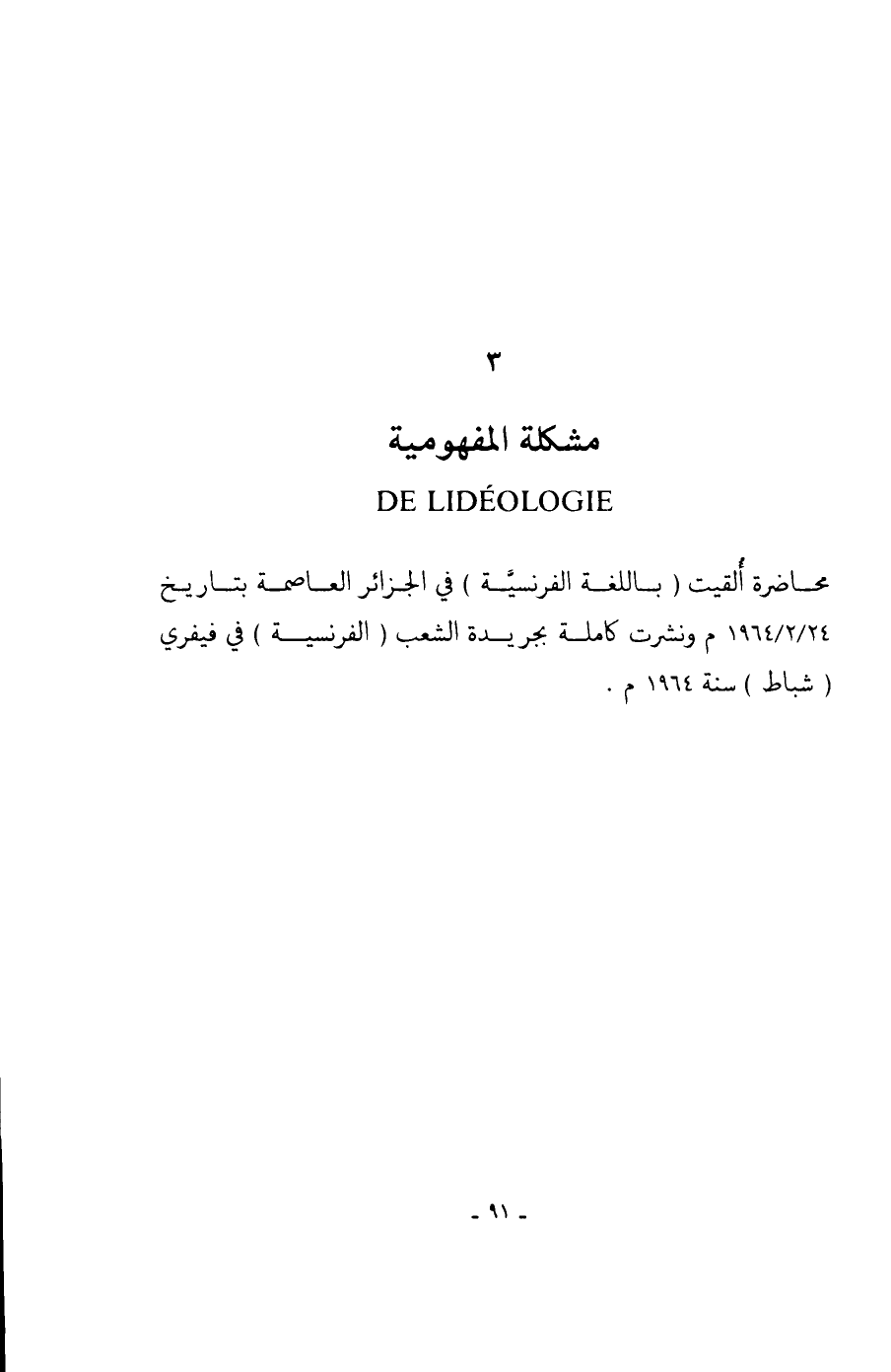 محاضرة أُلقيت (باللغة الفرنسيَّة) في الجزائر العاصة بتاريخ 24/ 2/ 1964م