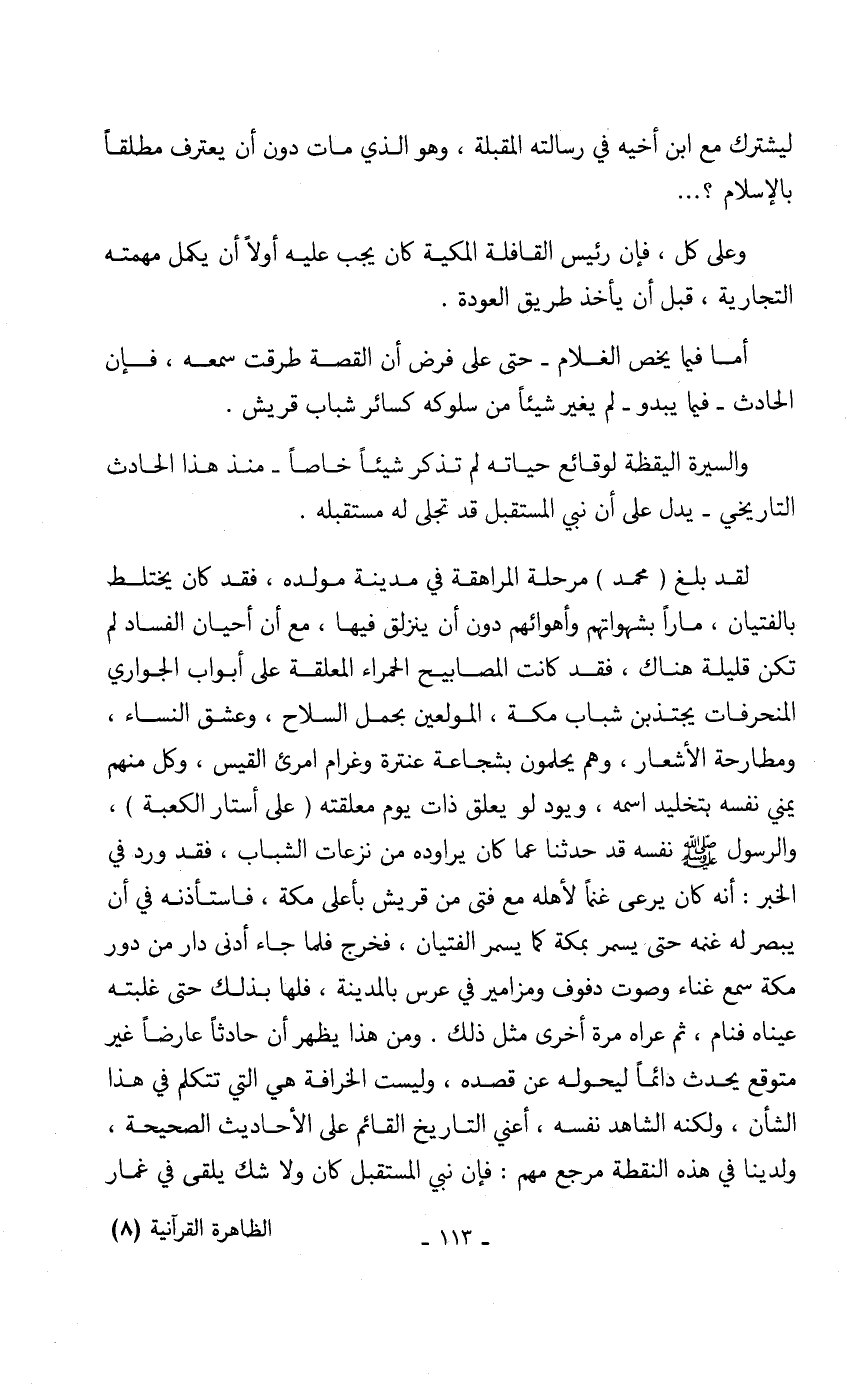 أما فيما يخص الغلام- حتى على فرض أن القصة طرقت سمعه، فإن الحادث- فيما يبدو- لم يغير شيئاً من سلوكه كسائر شباب قريش.
