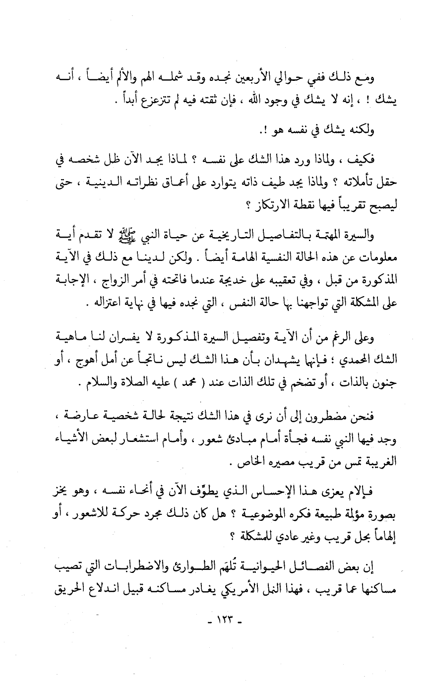 فنحن مضطرون إلى أن نرى في هذا الشك نتيجة لحالة شخصية عارضة، وجد فيها النبي نفسه فجأة أمام مبادئ شعور، وأمام استشعار لبعض الأشياء الغريبة تمس من قريب مصيره الخاص.