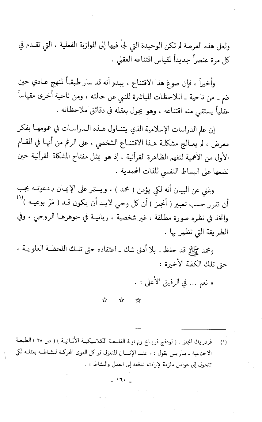 (1) فردريك انجلز. (لودفج فرباخ ونهاية الفلسفة الكلاسيكية الآلمانية) [ص:38] الطبعة الاجتماعية- باريس يقول: " عند الإنسان المنعزل تمر كل القوى المحركة لنشاطه بعقله لكي تتحول إلى عوامل ملزمة لإرادته تدفعه إلى العمل والنشاط".