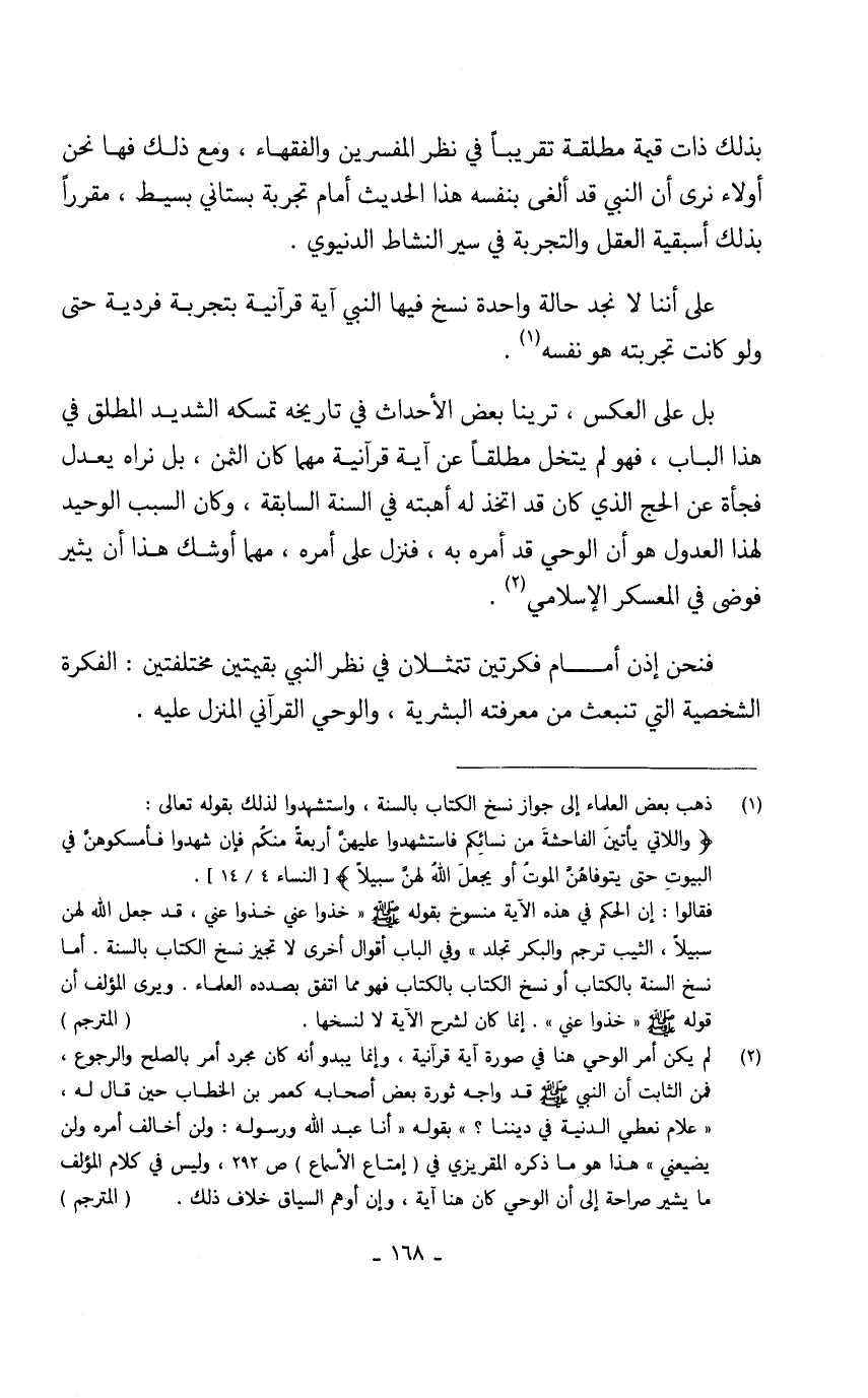 على أننا لا نجد حالة واحدة نسخ فيها النبي آية قرآنية بتجربة فردية حتى ولو كانت تجربته هو نفسه (1).