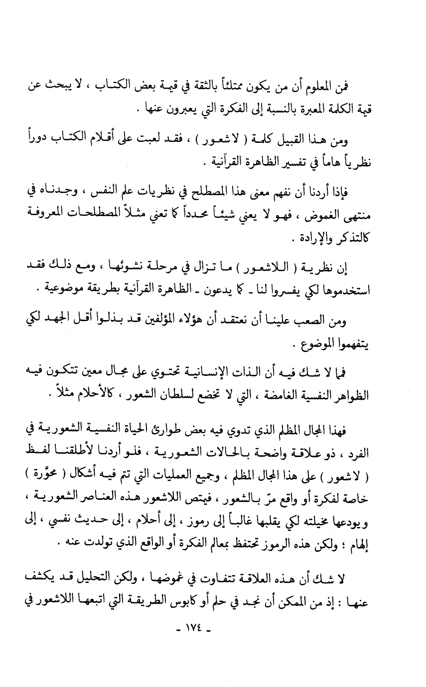 ومن هذا القبيل كلمة (لاشعور)، فقد لعبت على أقلام الكتاب دوراً نظرياً هاماً في تفسير الظاهرة القرآنية.