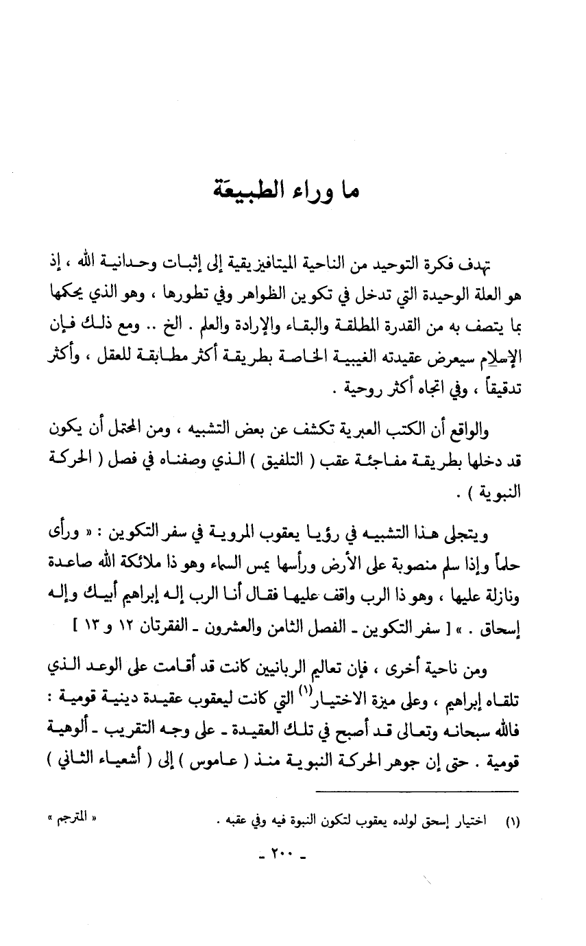 ويتجلى هذا التشبيه ورؤيا يعقوب المروية في سفر التكوين: "ورأى حلماً وإذا سلم منصوبة على الأرض ورأسها يمس السماء وهو ذا ملائكة الله صاعدة ونازلة عليها، وهو ذا الرب واقف عليها فقال أنا الرب إله إبراهيم أبيك وإله إسحاق." [سفر التكوين- الفصل الثامن والعشرون- الفقرتان 12 و 13] ومن ناحية أخرى، فإن تعاليم الربانيين كانت قد أقامت على الوعد الذي تلقاه إبراهيم، وعلى ميزة الاختيار (1) التي كانت ليعقوب عقيدة دينية قومية: فالله سبحانه وتعالى قد أصبح في تلك العقيدة- على وجه التقريب- ألوهية قومية. حتى إن جوهر الحركة النبوية منذ (عاموس) إلى (أشعياء الثاني)
