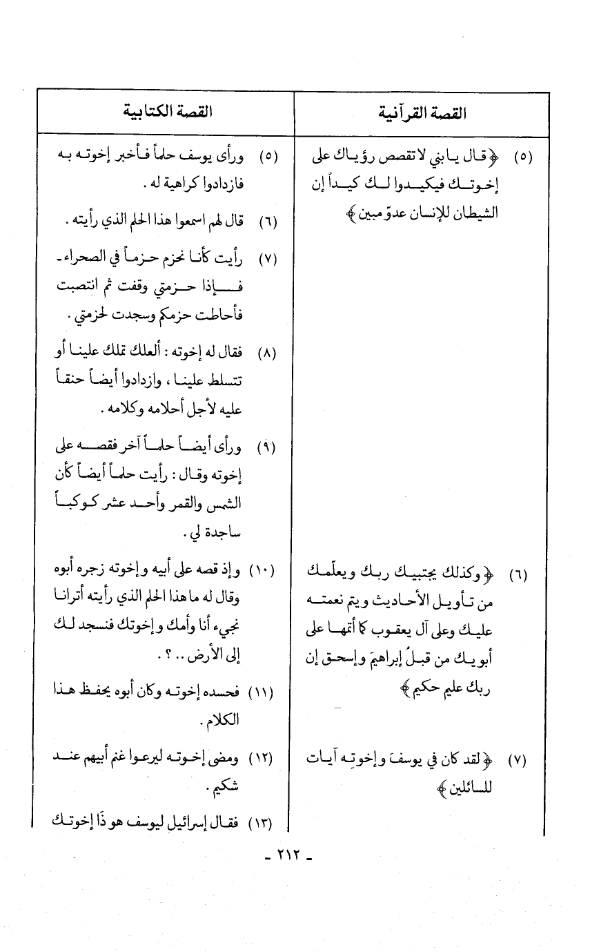 (5) {قَالَ يَا بُنَيَّ لَا تَقْصُصْ رُؤْيَاكَ عَلَى إِخْوَتِكَ فَيَكِيدُوا لَكَ كَيْدًا إِنَّ الشَّيْطَانَ لِلْإِنْسَانِ عَدُوٌّ مُبِينٌ} ........... (5) وَرَأَى يُوسُفُ حُلْمًا فَأَخْبَرَ إِخْوَتَهُ بِهِ فَازْدَادُوا كَرَاهِيَّةً لَهُ.